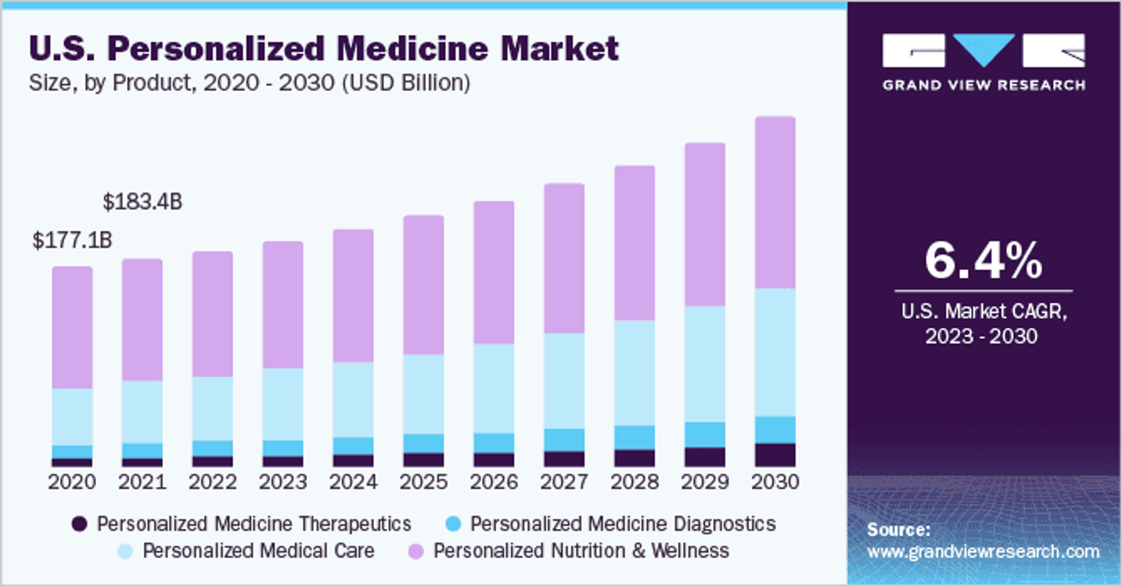 Providers are taking note, investing in the tools and technologies they need to meet patient expectations for personalized care. The market for personalized medicine has been growing steadily since 2020 and is projected to continue on this trajectory through 2030.