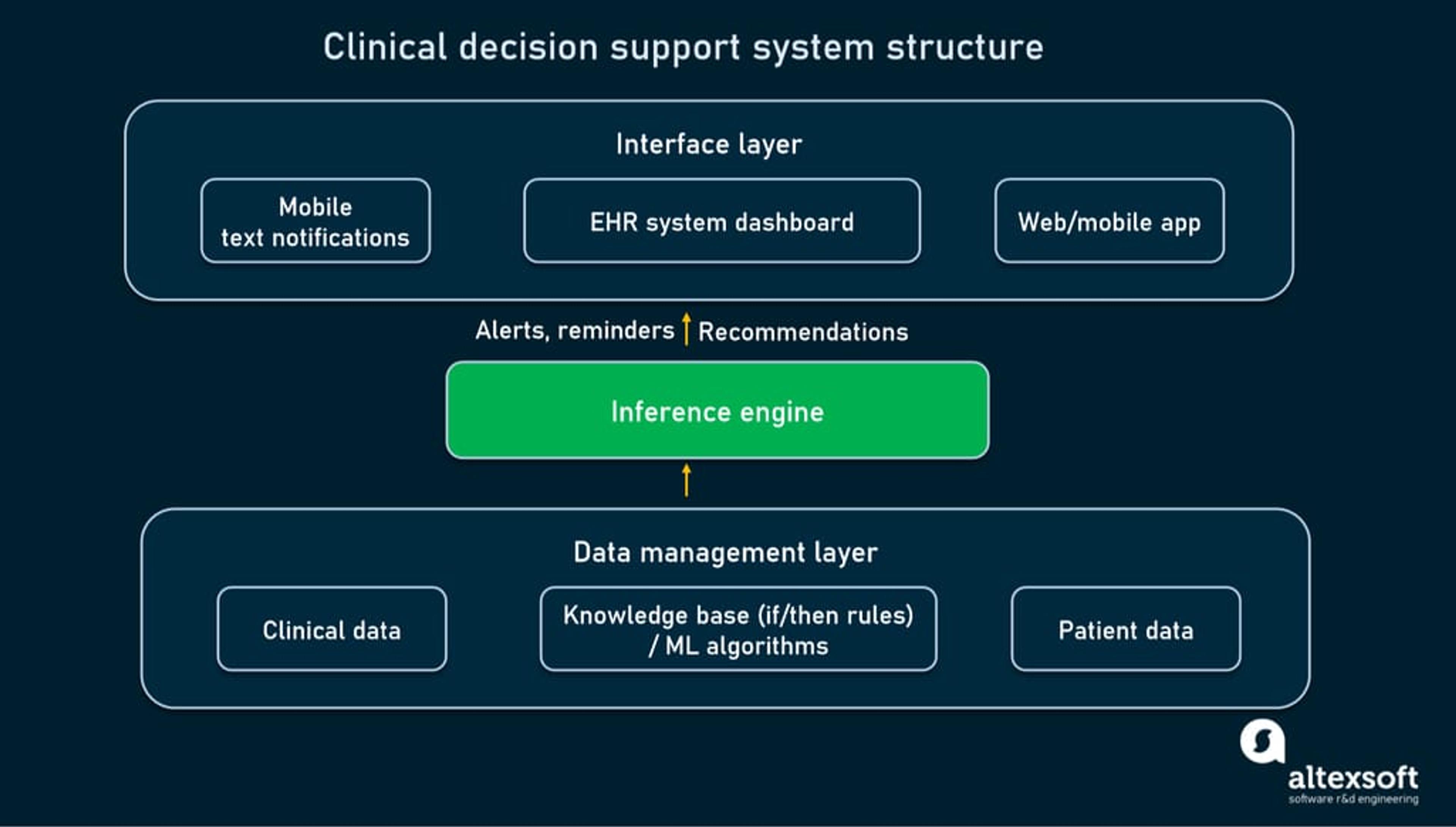 Clinical decision support systems utilize real-time data analytics to analyze medical data on the spot, providing health practitioners with critical insights as they make prescriptive decisions. They take healthcare data from a variety of sources, process it via its inference engine, and display it on a user interface (which can be for the provider or end user/patient).
