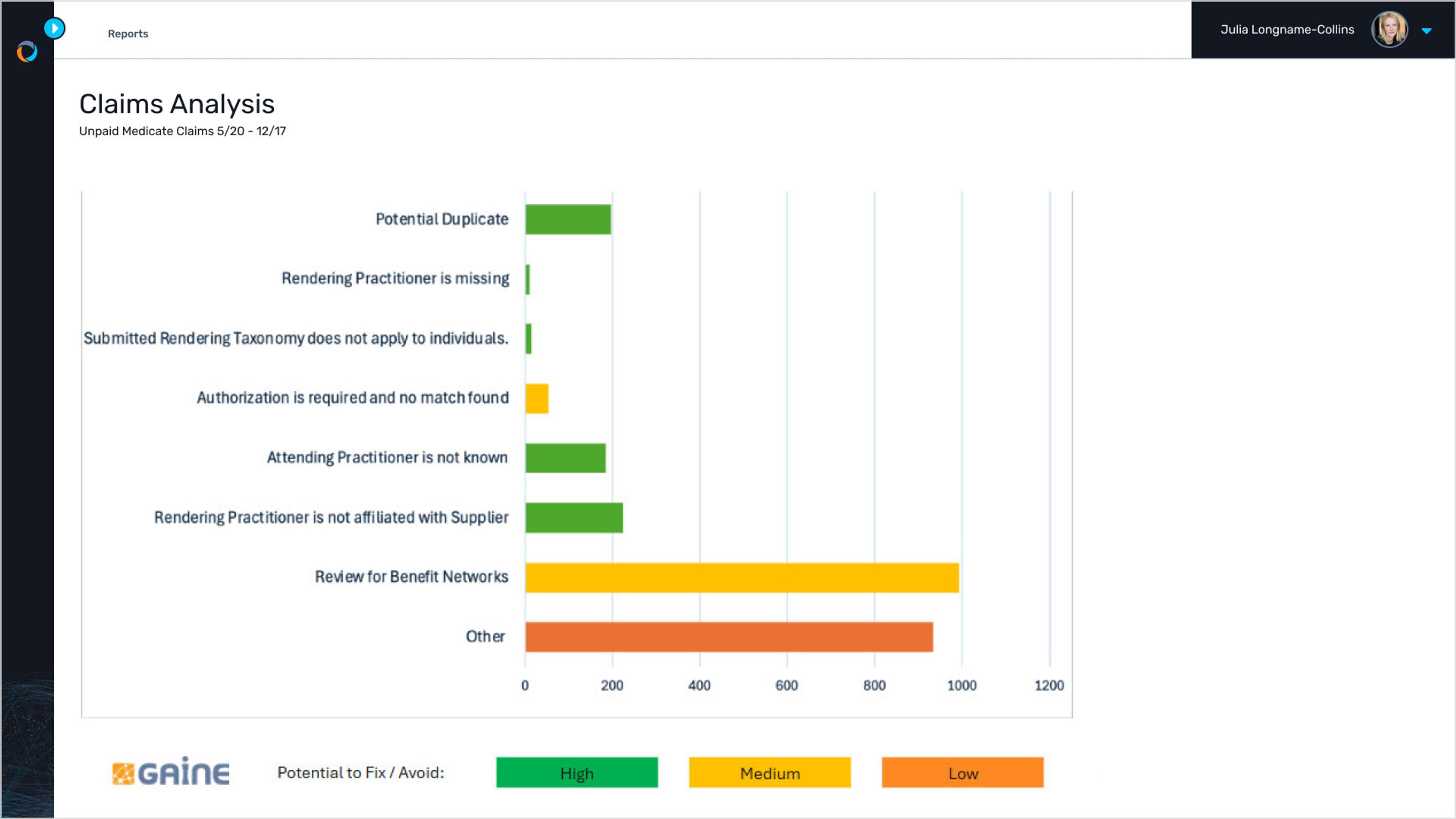 Utilize Gaine's advanced analytics and reporting tools to Gain(e) insights into claim trends, cost drivers, and payer performance.