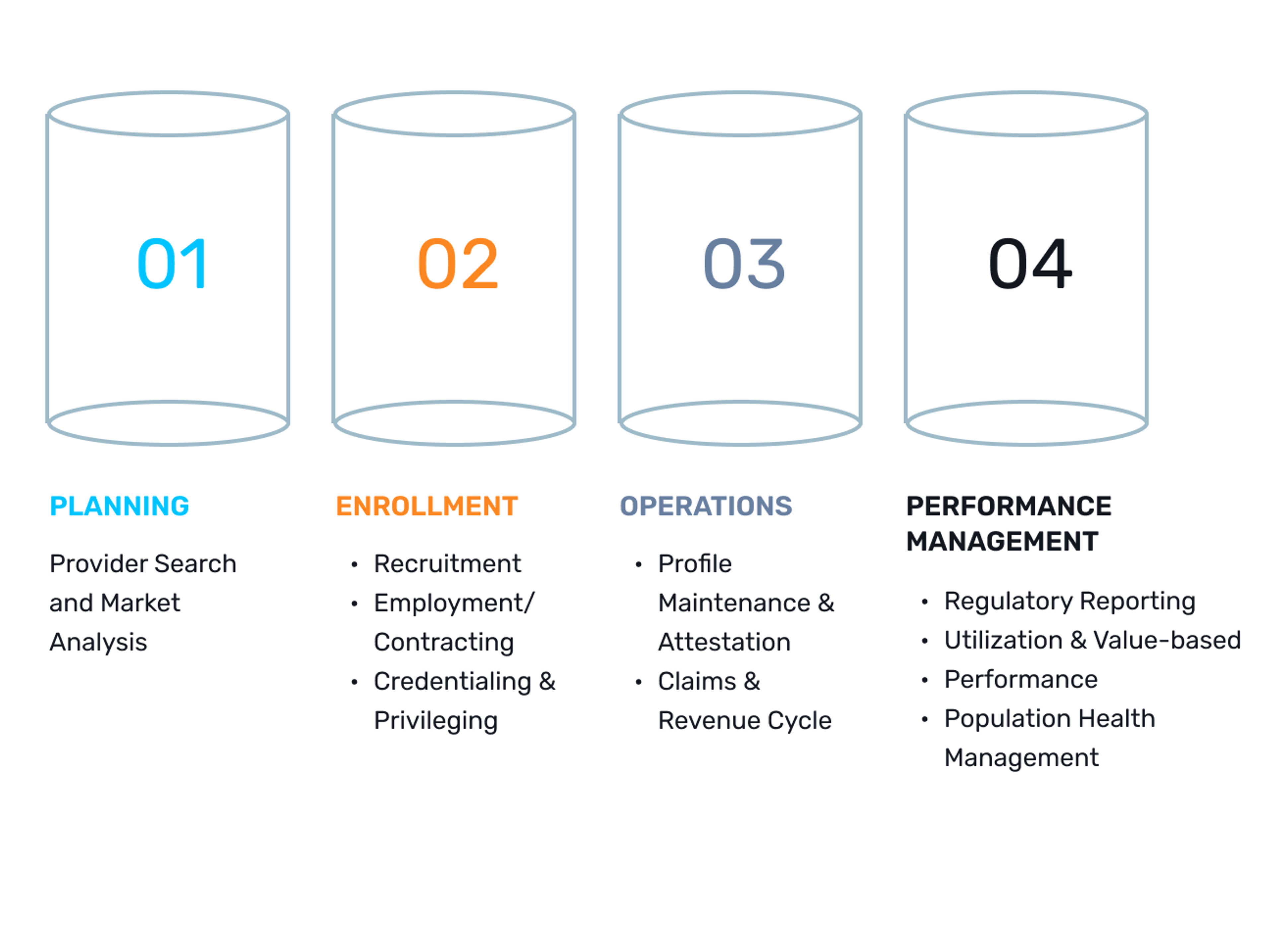 Bring together all your provider data from their various silos, regardless of source or format, into a single, accessible platform. Gaine can handle data from spreadsheets, databases, and other systems, creating a unified view of your providers. 15+ years of refining a data model exclusively for healthcare saves you time and reduces your risk.